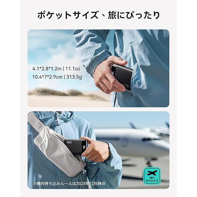 【INIU-安全かつ急速充電のプロ】3,800万人以上のグローバルユーザーと一緒に安心・安全な充電体験を楽しめます。INIUの充電製品は厳格な安全基準に従い、全製品に業界をリードする3年間の品質サービスを提供しています。 【市場最小サイズ、驚きの大容量】世界最小クラスの20,000mAhモバイルバッテリー。対角わずか1.94インチのコンパクトサイズで、iPhone 15を4回、Galaxy S23を3回充電可能な大容量。 【ポケットサイズで旅行に最適】ポケットや胸ポーチ、小さなバッグに簡単に収まるコンパクト設計。航空機持ち込み対応で、旅行にもぴったり。 【22.5W急速充電】わずか25分で75%充電可能。持ち運びながらの充電のストレスを軽減し、忙しい生活に対応。 【すべてのデバイスを充電可能】USB-C入力/出力ポート×2、USB-A出力ポート×1を搭載。スマートフォンからGPS、キャンプライトまで、アウトドア機器を広くサポート。低電流デバイス専用モードも対応。 【パッケージ内容】INIU 20000mAh モバイルバッテリー*1、30cm USB A-C ケーブル*1、取扱説明書(日本語説明つき)*1、3年間の品質及びライフタイムテクニカルサポート。