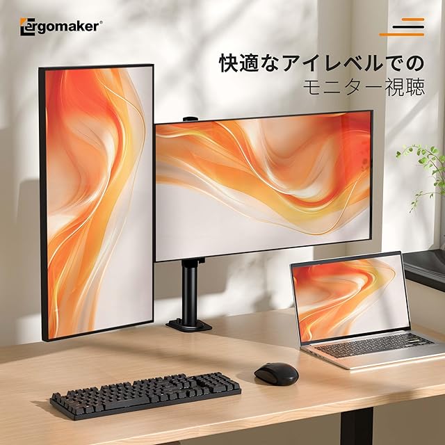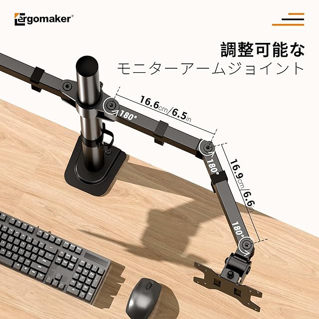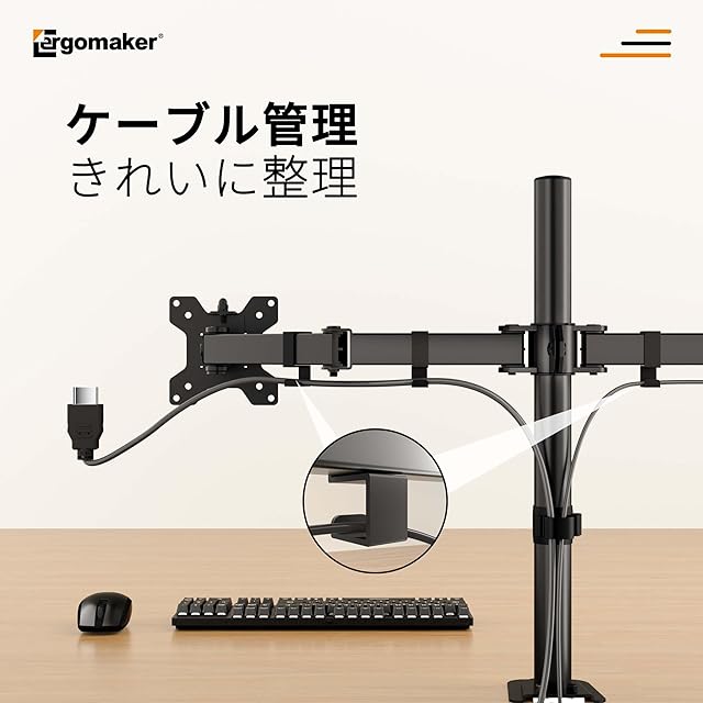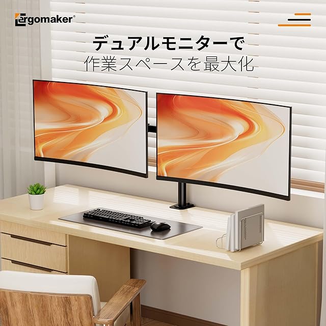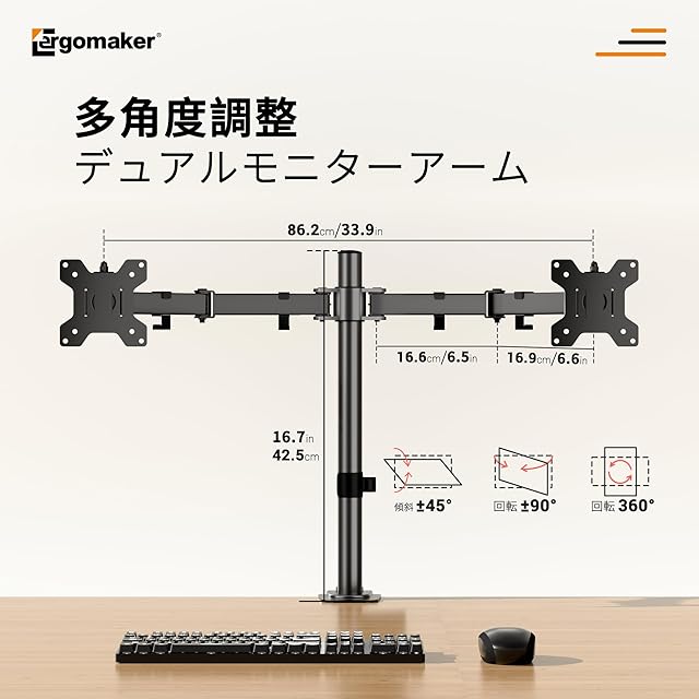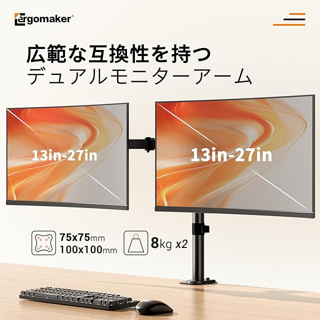 商品名:ERGOMAKER デュアルモニターアーム ディスプレイアーム 2画面 13~27インチモニター ダブルパソコンアーム 多角度調節 ケーブル収納 VESA:75x75mm/100x100mm