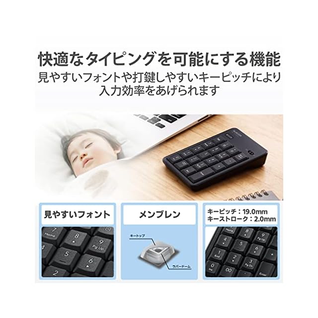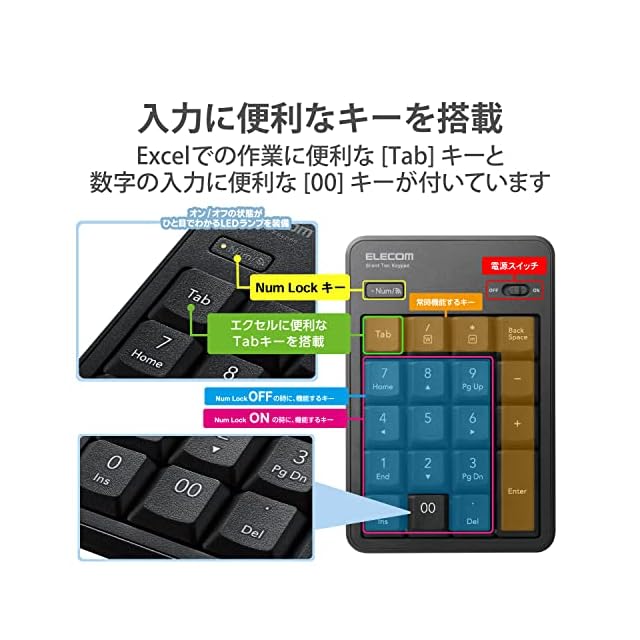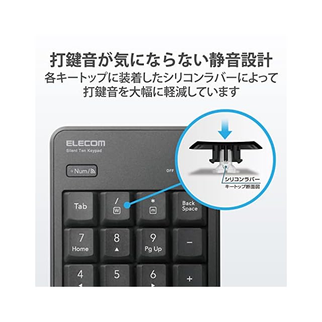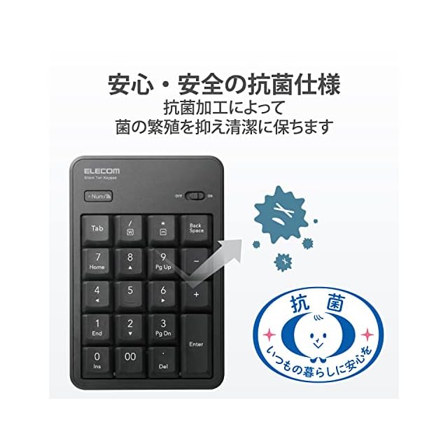 商品名:エレコム テンキー Bluetooth 静音設計 抗菌 Windows/Chrome OS/macOS対応 ブラック TK-TBM023SKBK