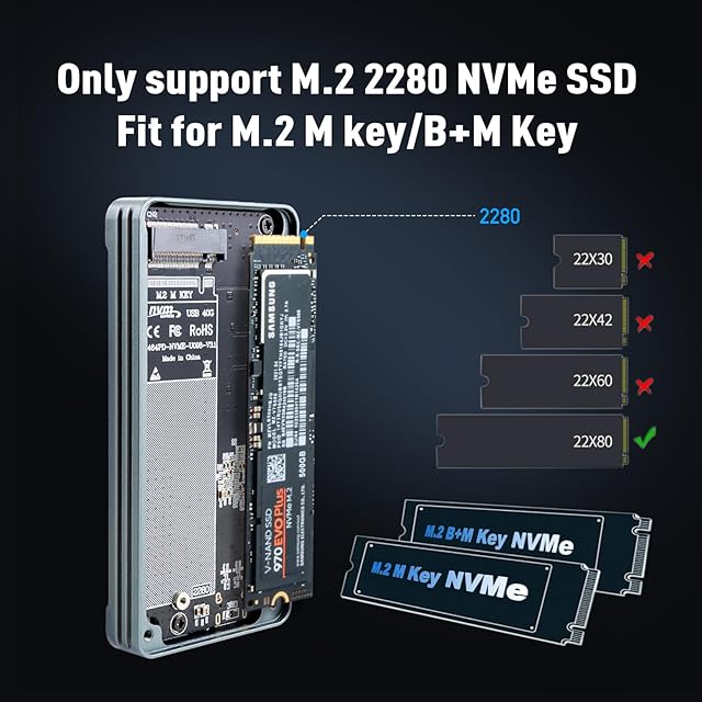 【幅広い互換性】2280 のM.2 M Key / B&M Key(Nvmeのみ)のSSDに対応します。ご注意: B-Key / B+M Key(SATA)のSSDには非対応となります。Mac OS、Windows 7/8/10、Linuxのシステムを対応します。LED インジケーターはデバイスの接続ステータスを示します。