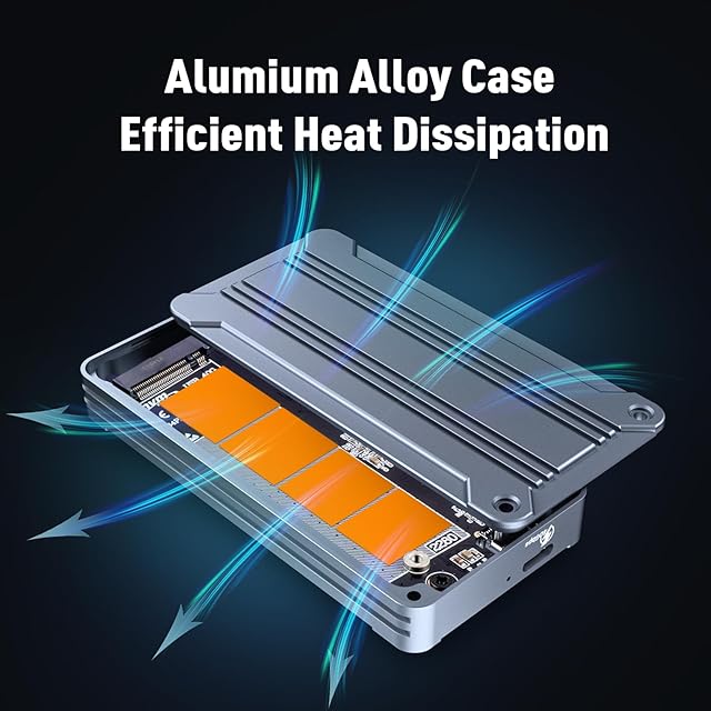 [高速放熱] M.2 エンクロージャはシリコン熱パッドを搭載したM.2 SSD ケースは、SSD ケースに正確に熱を伝熱し、放熱効率は普通のハードディスクケースより20%高いです。優れた放熱性を備えており、優れた冷却性能と最適な状態を確保してより良い使用を実現します。注:ヒートシンクはM.2のサイズに合わせて設計されているため、貼り付けることができない場合は、すぐにご連絡ください。アルミは熱伝導率が高いため、使用中に表面が高温になることがあります。直接触れる際にはご注意ください。