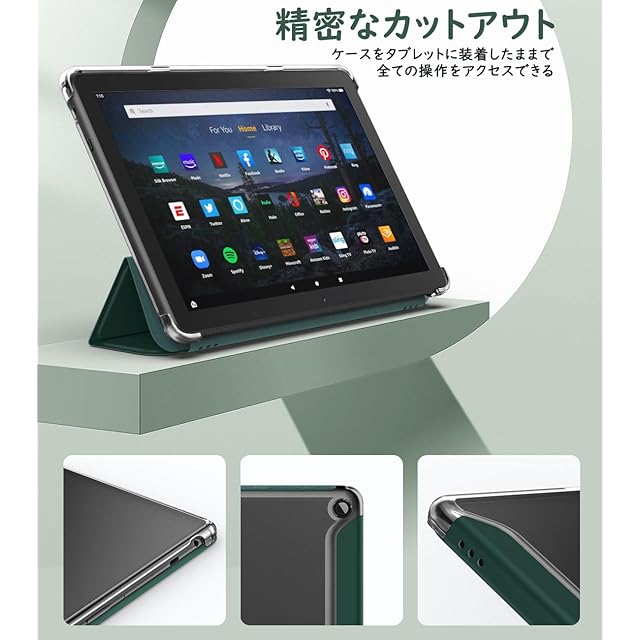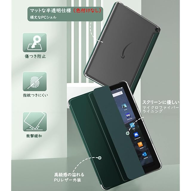 Fire HD 10 ケース 2023 MoKo New Fire HD 10 第13世代 保護カバー 手帳型 スタンドケース オートスリープ対応 高級PUレザー外装 PC製シェルケース マイクロファイバー裏地 軽量 薄型 傷つき/汚れ防止 DeepGreen | TREND DESIGN 家電専門店
