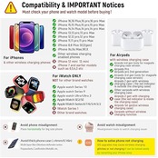 ▲大事なこと:iPhone 13/12 miniに対応できません。watchの充電部分はApple Watch専用。ご購入する前に、対応デバイスをちゃんと確認ください。(iPhone15/14 Pro maxは充電時に横向/きにする必要があります。) 【多機種対応】★5Wに適応できるApple Watch 充電器:Apple watch ultra/ultra2/Apple Watch Series10/9/8/7/6/ SE/5/4/3/2;Airpods pro2/Airpods 4/3世代/pro/2代(ワイヤレス充電)。★7.5Wに適応できる:iPhone 充電器:iphone16/16 plus/16 pro promax/15/14/13/12plus/Pro/Pro Max/iPhone 11など★10Wに適応できる機種は以下:Galaxy S20Ultra/S20+/S10e/S10/9/S9/8/S8などのQi対応機