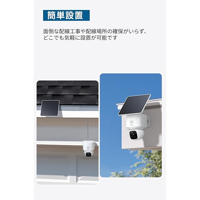商品名:Anker Eufy(ユーフィ)SoloCam E30(屋外用防犯カメラ)【ソーラー充電 / 360°撮影可能 / 300万画素 / 2K画質 / 防犯対策/ワイヤレス対応/連続給電可能/バッテリー搭載 / 2.4 GHz Wi-Fi / IP65 防塵防水/追加料金不要 】