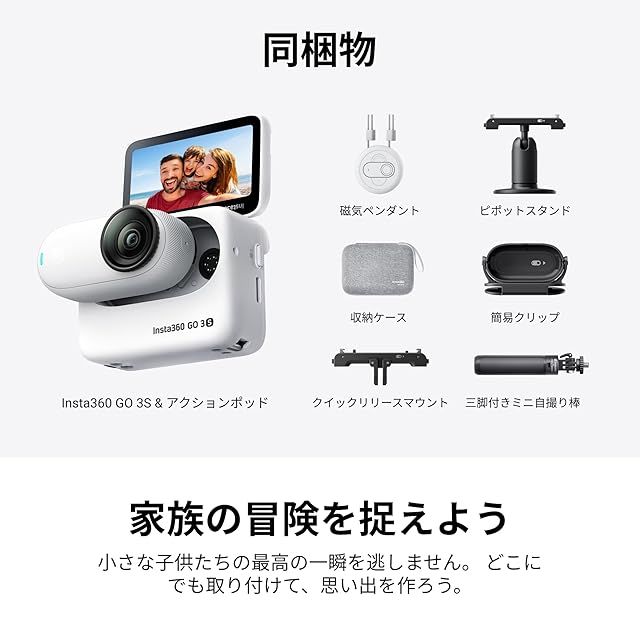 商品名:Insta360 GO 3S - 4K小型ウェアラブルVlogビデオカメラ、ハンズフリーPOV、どこでもマウント、手ブレ補正、バッテリー寿命140分、10m防水、AI編集、Apple Find My対応、Vlog/旅行/アウトドア/ペットPOV用 トラベルキット - 128GB
