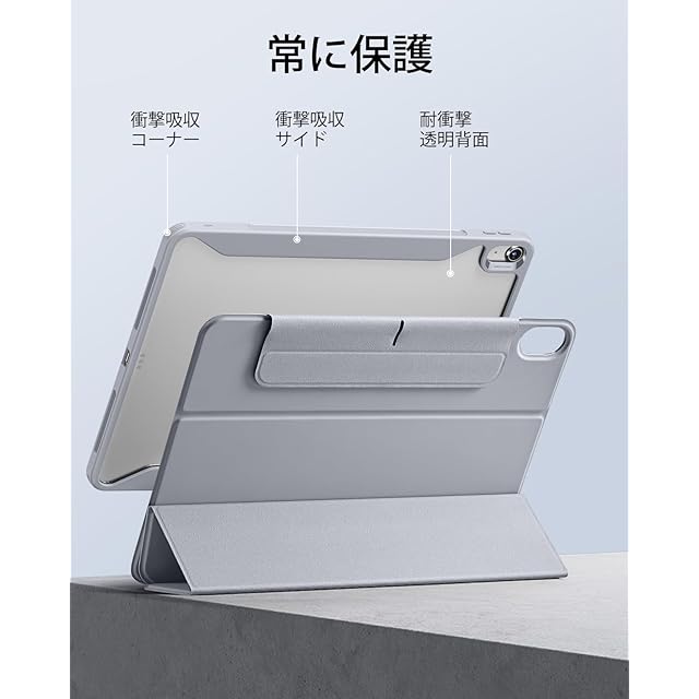 ESR iPad Air 13インチ ケース (2025/2024、M3/M2) 専用 Pencilホルダー付き 取り外し可能マグネットカバー 縦置き/横置きスタンド Pencil Pro/USB-C完全対応 Rebound 360シリーズ グレー | TREND DESIGN 家電専門店
