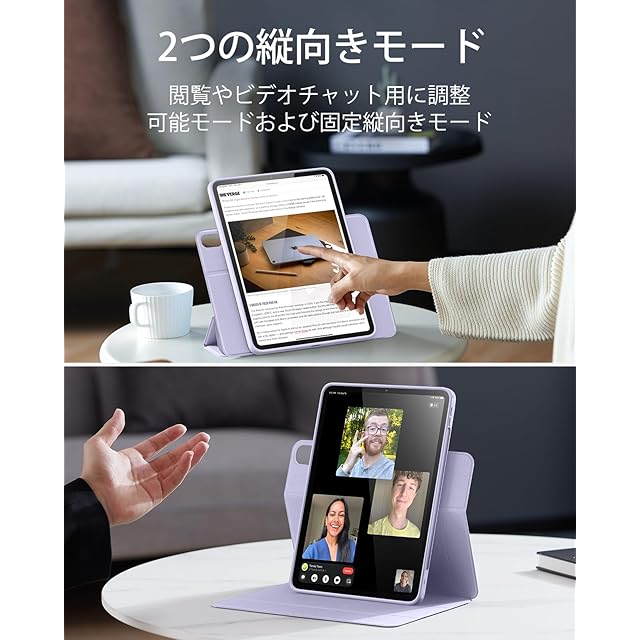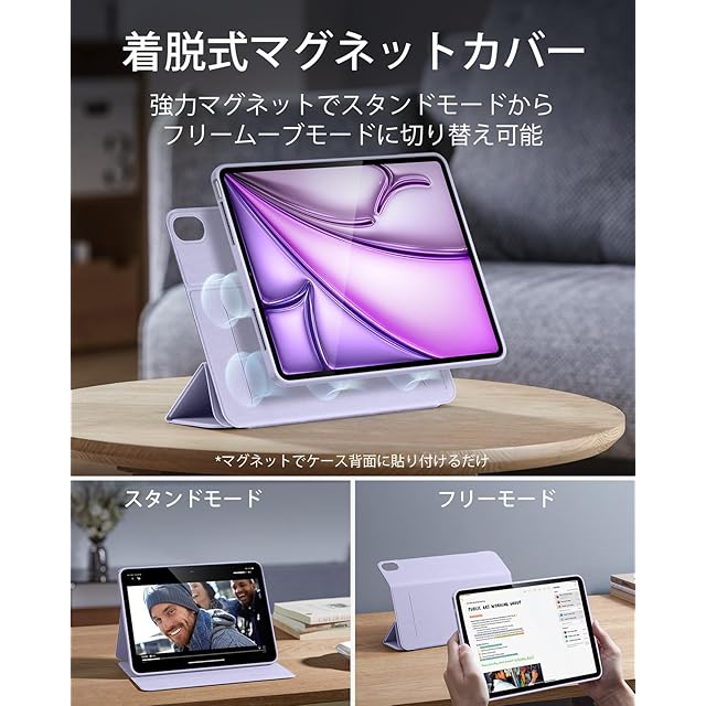 ESR iPad Air 13インチ ケース (2025/2024、M3/M2) 専用 Pencilホルダー付き 取り外し可能マグネットカバー 縦置き/横置きスタンド Pencil Pro/USB-C完全対応 Rebound 360シリーズ バイオレット・パープル | TREND DESIGN 家電専門店