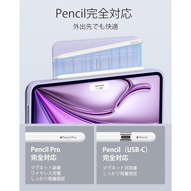 商品名:ESR iPad Air 13インチ ケース (2025/2024、M3/M2) 専用 Pencilホルダー付き 取り外し可能マグネットカバー 縦置き/横置きスタンド Pencil Pro/USB-C完全対応 Rebound 360シリーズ バイオレット・パープル