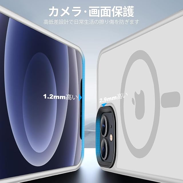 いくら気をつけていても落とす時がある!でも大丈夫!2Mの高さから26回以上落としても本体は綺麗に無傷!背面「カメラエアバッグ」耐衝撃技術も備えています。耐震性の高いTPUバンパーと頑丈なPC背面と組み合わせた二重構造で、非常に高い耐衝撃性を誇り、アイフォン12/12Pro を全方位からしっかりと守ります。