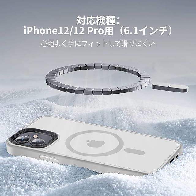 商品名:【米軍規格・MagSafe対応】Gtsoho iPhone 12 / 12 Pro 用 ケース 半透明 マグネット搭載 耐衝撃 マット感 黄ばみなし ストラップホール付き マグセーフ対応 ワイアレス充電対応 グレー