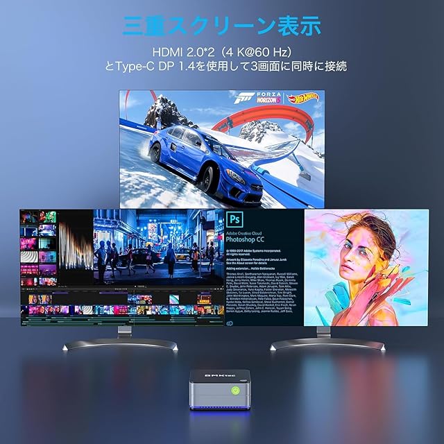 【4K映像出力&三画面同時接続】Intel N150初登場 小型PCは2つのHDMIポートとDisplayPortを使って、最大4096×2160@60Hzの解像度で3台のディスプレイを同時に接続でき、効率的なマルチタスクが可能です。多くの画面を活用することで作業環境を一層充実させます。Intel UHDグラフィックスを搭載、解像度は4K@60Hzと高く、4K超高精細動画再生に対応し、画像処理はよりスムーズで、4K ビデオの再生速度もより高速。ビジネス、オンライン教育、自宅ワーク、テレワークなど多くの場面に適し、同時に複数のタスクを遂行することができる。