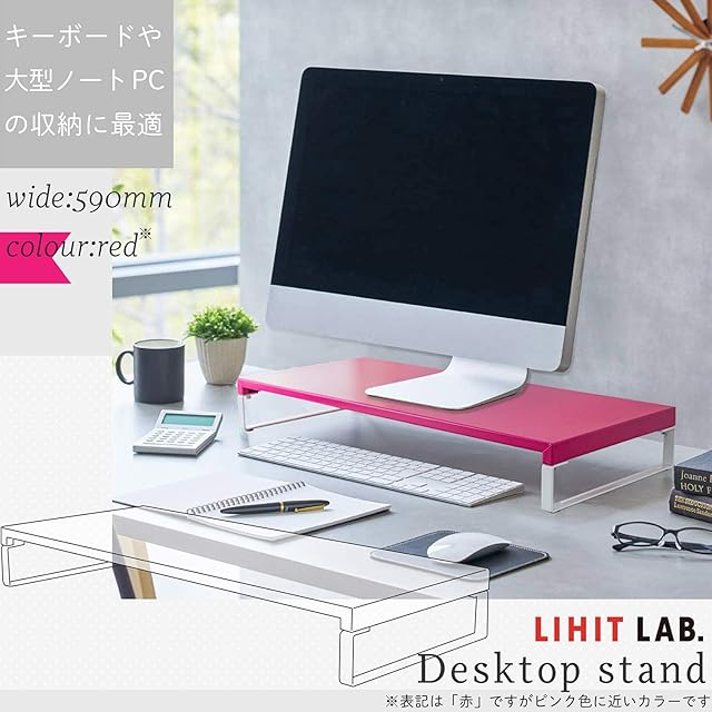 商品名:リヒトラブ パソコン台 モニター台 机上台 赤 幅59×奥行25×高さ8cm ロー 耐荷重15kg A7332-3