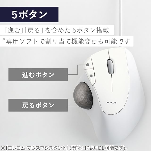商品名:エレコム 有線 トラックボールマウス IST 親指操作 36mmボール 人工ルビー支持 5ボタン Windows Mac Chromebook ホワイト M-IT10URWH