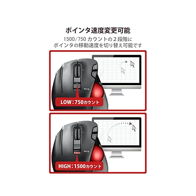 ポインタの移動速度を1500/750カウントの2段階に切り替えできる速度変更スイッチが付いています。