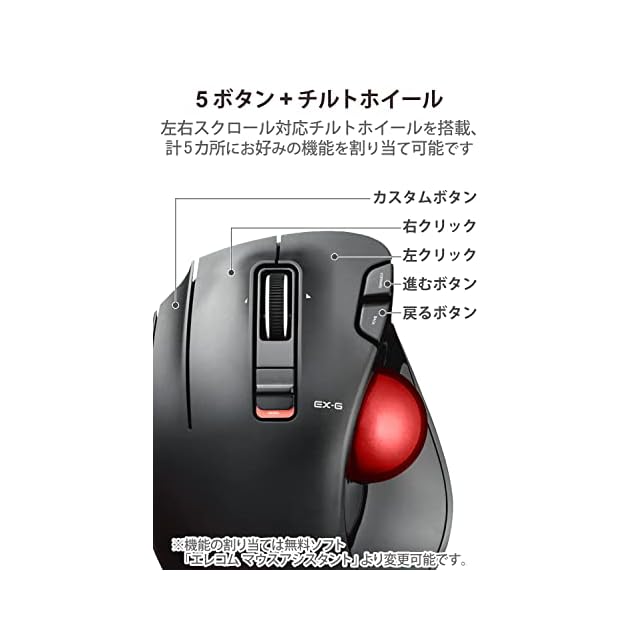 エレコム マウス ワイヤレス トラックボール (親指) 左手専用 赤玉 6ボタン チルト機能(左右スクロール) ゲーミンググレード光学センサー採用 ブラック M-XT4DRBK-G | TREND DESIGN 家電専門店
