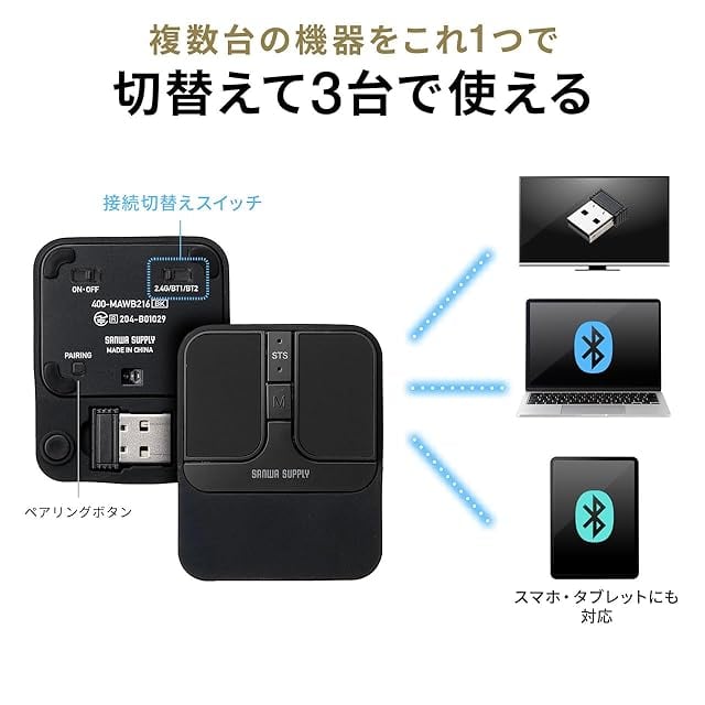 合計3台の マルチペアリング に対応し、USB Aレシーバー×1台、 ブルートゥース ×2台の 接続 を切り替えて使えます。 Bluetooth接続 に対応するのでiPhoneやiPad、Android タブレット や スマホ などでも使用できます。