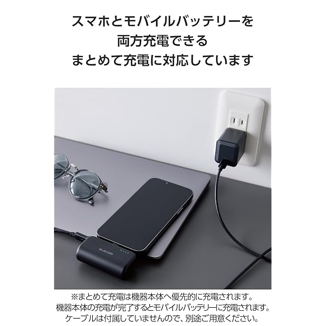 スマートフォンに挿した状態で本製品を充電することで、スマートフォン・本製品を両方充電できる「まとめて充電」に対応しています。カフェや旅先など、充電ポートが一つしかない場面でも便利です。