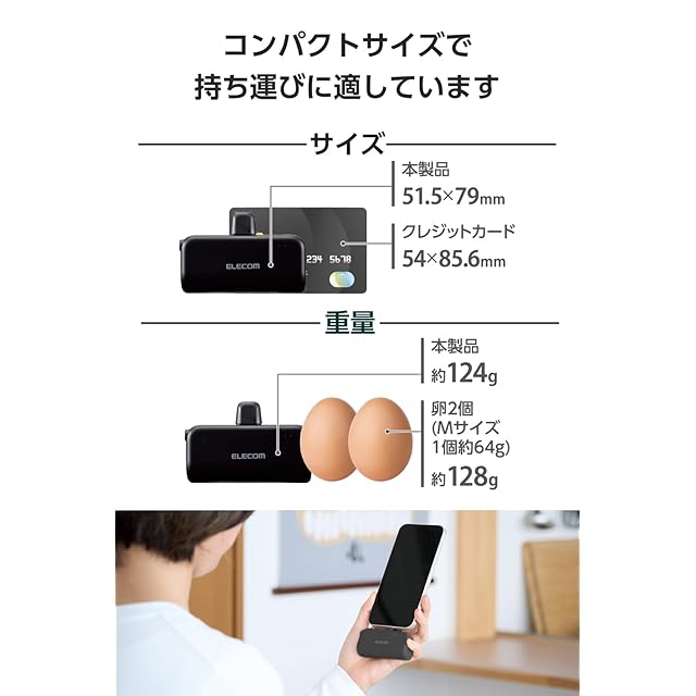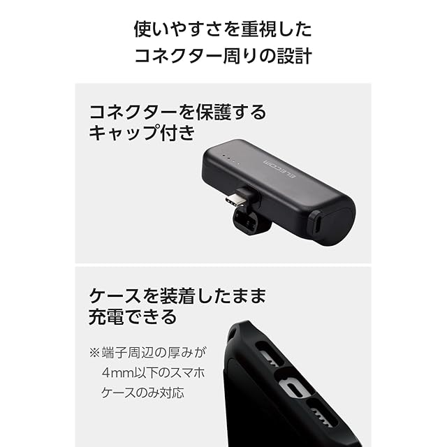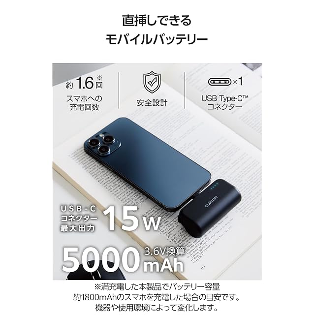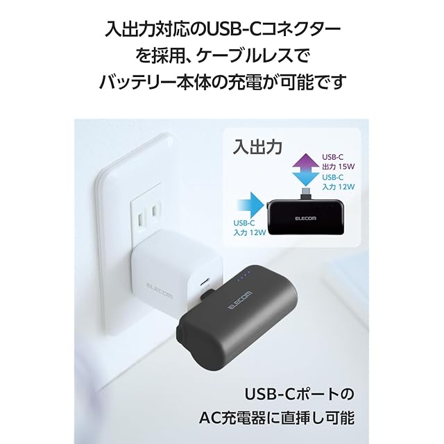 商品名:エレコム モバイルバッテリー 15W 5000mAh Type-C 直挿し 小型 軽量 ケーブル要らず、挿すだけ充電 ケーブル別売り 【iPhone 15/ Pixel 7a / iPad 第10世代 など対応】 ブラック EC-C09LBK