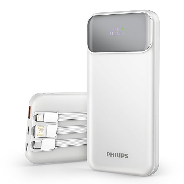 Philips (フィリップス) モバイルバッテリー 10000mAh大容量 ケーブル内蔵 PD&QC急速充電 四台同時充電 LED電量表示 スマホ充電器 PSE認証済 多種保護 持ち運びやすい DLP1912CW | TREND DESIGN 家電専門店
