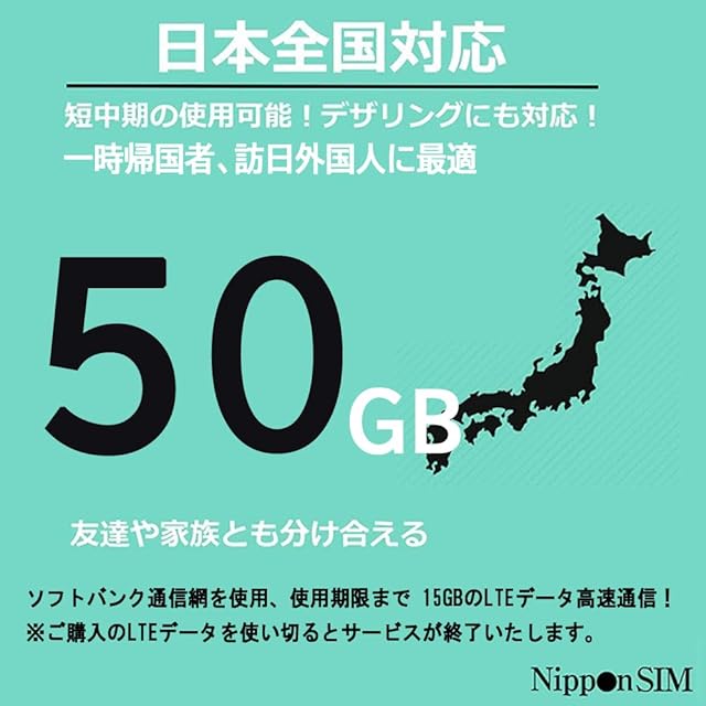 商品名:Softbank プリペイドsim 日本 ソフトバンク 50GB simカード プリペイド マルチカットsim (標準/マイクロ/ナノ) データ通信専用 4G LTE simフリー端末のみ対応 マニュアル付 安心サポート