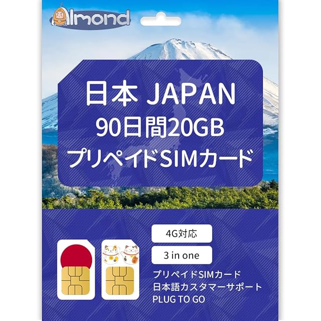 【特徴1】カード有効期限:有効期間はご購入後の10か月後(未開通の場合)、利用始めてから最大90日間利用可能 4G高速データ通信を利用できるプリペイドSIMカード。20GB高速データ、90日間有効!電波が強いDocomoプリペイドSIMカード。ぜひご利用くださいませ。 <br><br> 【特徴2】SIMロック解除端末 / SIMフリー端末 ※docomoロック端末は不可・利用する端末にテザリング機能があればデータ通信を分け合って高速通信利用する事もできます。周波数帯域: 【4G】Band1 2,100Mhz 、Band3 1,800Mhz 、Band8 900Mhz 、Band28 700Mhz 【3G】2,100Mhz 、900Mhz ※ご利用機種によっては利用出来ない場合があります。 <br><br> 【特徴3】キャリア:IIJDocomo。SIMサイズ:3 in 1サイズに対応(細い切込みが入っておりますので使用サイズに合わせて押し出して分割できます。失敗されることは無いと思いますが、外になりますのでご注意願います) <br><br> 【特徴4】日本語カスタマーサポート。日本への一時帰国の方、テレワークで利用する方、訪日外国人の方に安心な24日間365日対応の日本語、英語、中国語のカスタマーサポートがございます。 <br><br> 【特徴5】【アプリでの通話可能】電話番号での通話はできませんが、LineやSkypeなどで音声通話は可能。PLU TO GO のSIMです(設定不要でSIMをデバイスに挿せば通信開始します)。多言語マニュアル付き!カスタマーサポート完備!