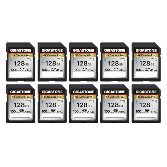 Gigastone SDカード 128GB 10枚セット メモリーカード A1 V30 U3 Class 10 SDXC 高速 4K UHD & Full HD ビデオ Canon Nikon など デジタルカメラ 一眼レフ対応 ミニケース10個付き