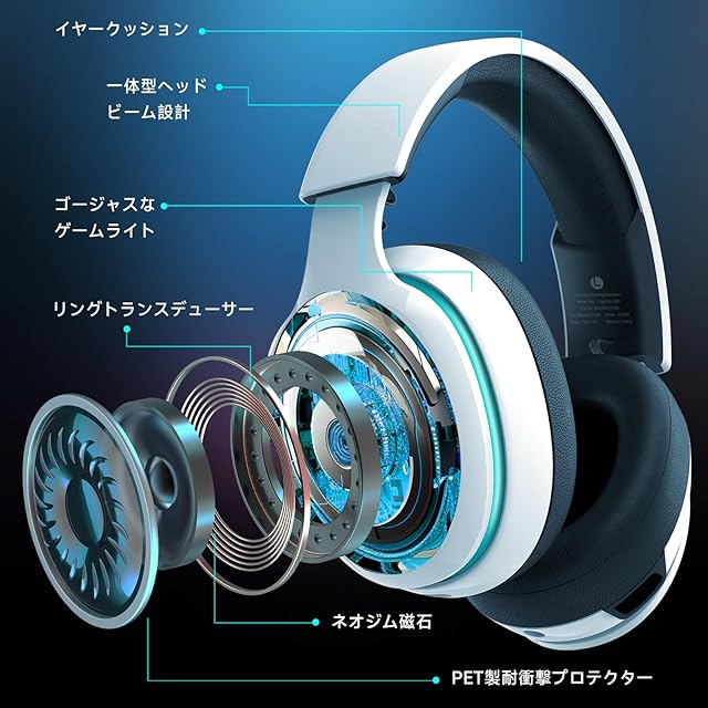 商品名:ゲーミングヘッドセット【2.4GUSBアダプター /Bluetooth 5.3/有線 3WAY接続】 ワイヤレス PS5 PS4 PC Switch スマートフォン xboxone 対応ヘッドフォン 50MMドライバー 低遅延 40H再生ヘッドホン 無線 Gvyugke CT300 マイク付き (ホワイト)