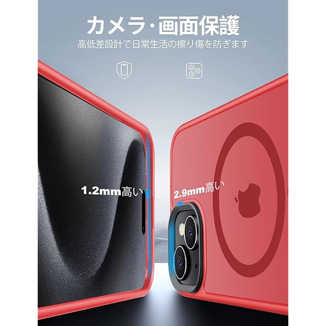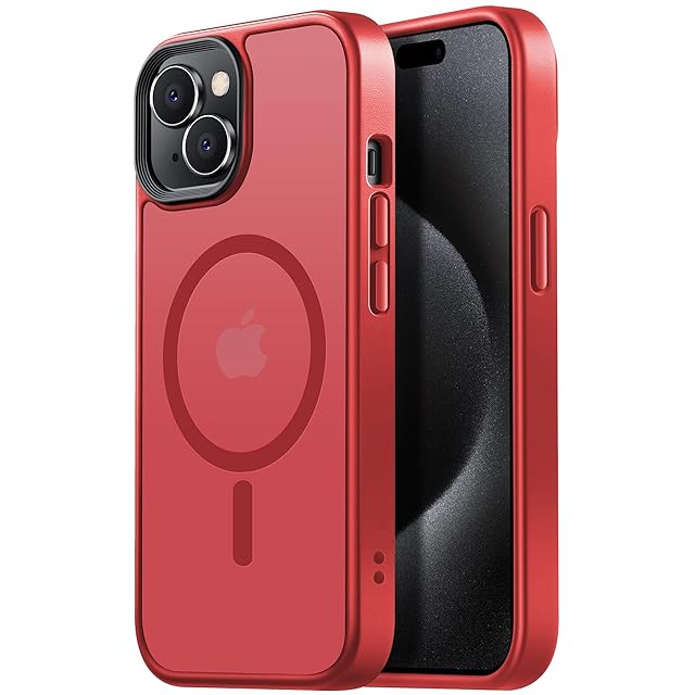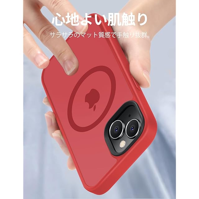 【米軍規格・MagSafe対応】Gtsoho iPhone 15 用 ケース 半透明 マグネット搭載 ワイヤレス充電 耐衝撃 耐久性 全面保護 黄ばみなし ストラップホール付き イフォン15用 カバー マグセーフ対応 赤い | TREND DESIGN 家電専門店