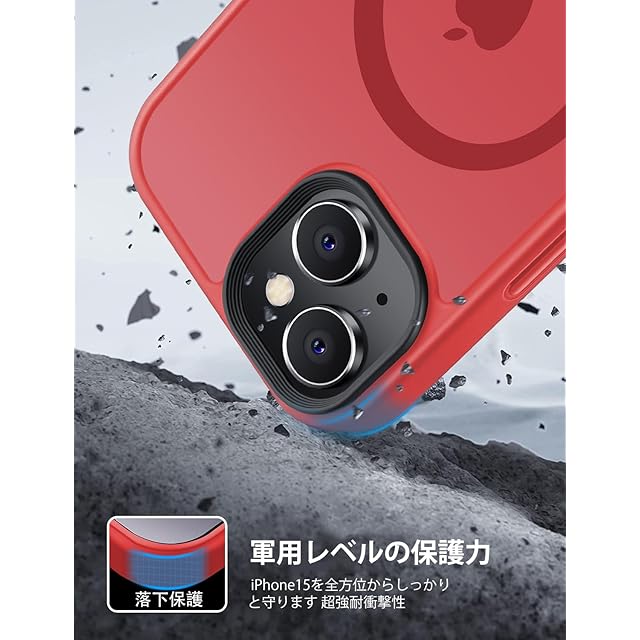 商品名:【米軍規格・MagSafe対応】Gtsoho iPhone 15 用 ケース 半透明 マグネット搭載 ワイヤレス充電 耐衝撃 耐久性 全面保護 黄ばみなし ストラップホール付き イフォン15用 カバー マグセーフ対応 赤い