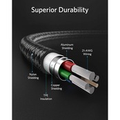 プレミアム設計:二重に編み込まれた高耐久ナイロンに加え、様々な加工や保護技術を駆使してケーブルの耐久性を追求、高耐久性を実現しました。