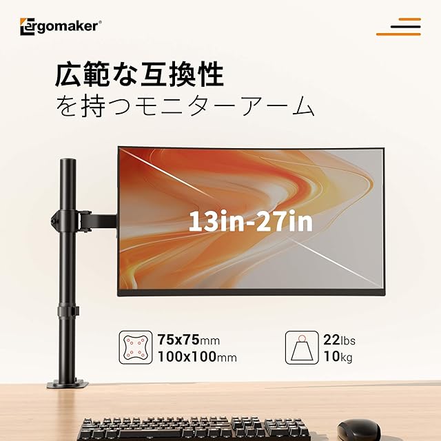商品名:ERGOMAKER モニターアーム ディスプレイアーム 13~27インチモニター パソコンアーム 多角度調節 ケーブル収納 VESA:75x75mm/100x100mm