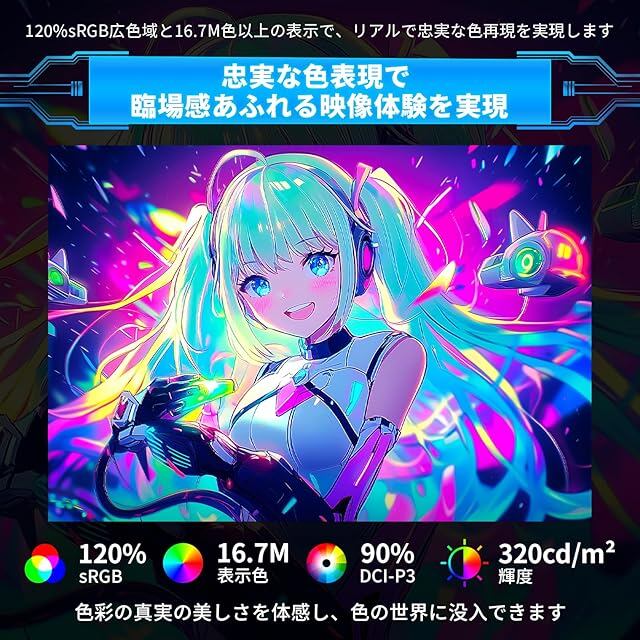 【プロ級カラー性能】DCI-P3 90%/sRGB 120%超の広色域カバー率に加え、1000:1コントラスト比&320cd/㎡高輝度を実現。FPSの暗所描写からRPGの幻想的な情景まで、16.7万色(8bit)の滑らかな階調表現で奥行きある映像を再現。HDR対応で太陽光の眩しさから影の微細な質感まで階調を保持し、臨場感あるバトルフィールドを構築。16:9アスペクト比がゲーム/動画/作業のマルチシーンで画面比率の最適化を実現。映画/ゲーム/FPS/RTS/sRGBの各シーン専用映像エンジンを搭載。