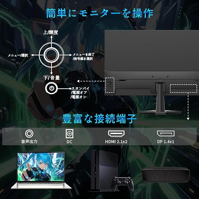 【多様な接続端子】HDMI 2.0/DisplayPort 1.4を完全装備。PC・PS5・Xbox・Nintendo Switchなど多機種とのワンストップ接続環境を構築。同梱のHDMIケーブル接続ですぐに200Hzモードを起動可能。豊富な付属品入り(DPケーブル/アダプター/スタンド)で、開封5分でプロ仕様のゲーミングステーションを完成。2W内蔵スピーカー&3.5mmオーディオ出力が臨場感ある立体音響を再生。日本語の説明書対応しています。