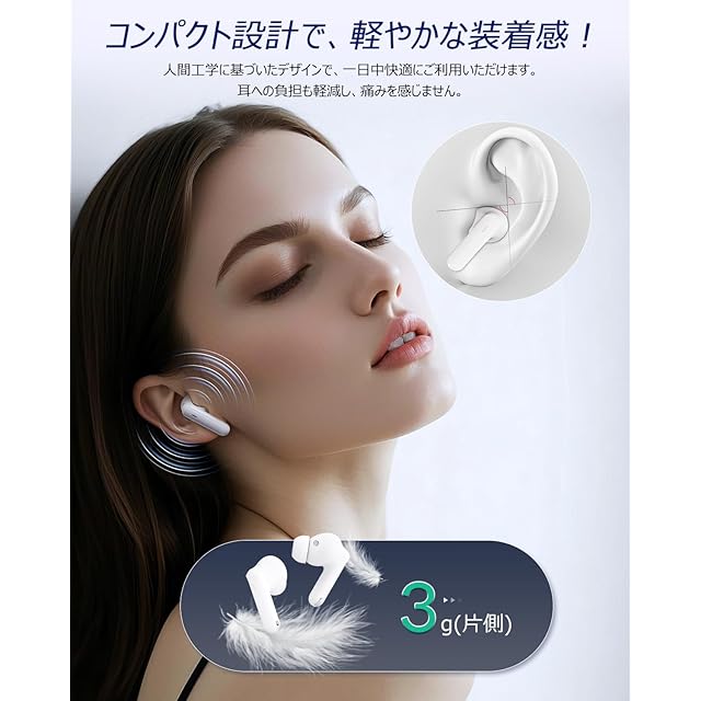 【軽量設計 & 人間工学に基づいた快適フィット】 片耳わずか3gの超軽量設計で、長時間使用しても耳への負担が軽減!人間工学に基づいた形状で、運動中でもズレ落ちにくく、快適な装着感を実現しています。 付属のイヤーピースは3サイズ(S/M/L)を同梱しており、自分の耳にぴったりのフィット感を見つけられます。通勤・ジム・旅行など、あらゆるシーンで活躍します!