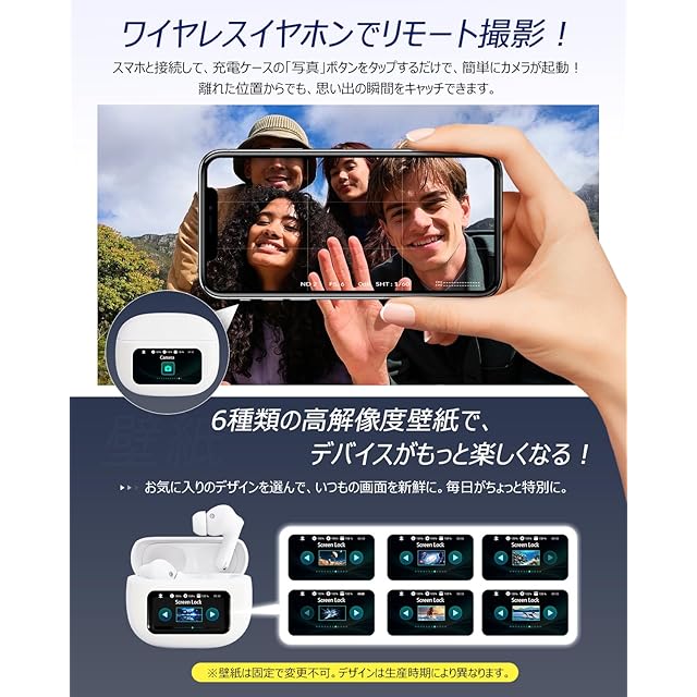 【業界初!タッチスクリーン搭載で操作がさらにスマートに 】✨このイヤホンの最大の特徴は、フルカラーのLEDタッチスクリーンを搭載していることです! 従来のボタン操作ではなく、直感的なタッチ操作で、音楽再生・音量調整・ノイズキャンセリングモードの切り替えなど、12の機能を簡単にコントロールできます。 画面は鮮明で見やすく、暗い場所でも問題なく操作可能。さらに、6種類の高解像度壁紙(デザインは生産時期により異なる)を搭載し、デバイスの見た目を自分好みにカスタマイズ可能です。 操作画面はシンプルで分かりやすく、初めての方でもすぐに使いこなせます!外観カラーのパールホワイトのユニークなデザインは、光に照らされて比類のない美しさを見せてくれます。