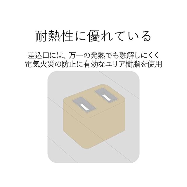 AC差込口には、万一の発熱の際にも融解しにくく、電気火災の防止に有効な耐熱性に優れたユリア樹脂を使用しています。