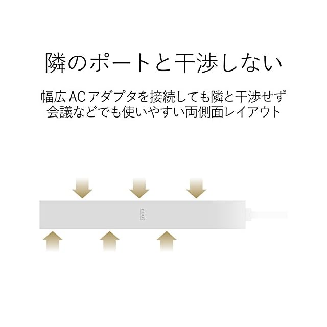 幅広のACアダプタを接続しても隣のポートと干渉せず、会議などでも使いやすい両側面レイアウトです。