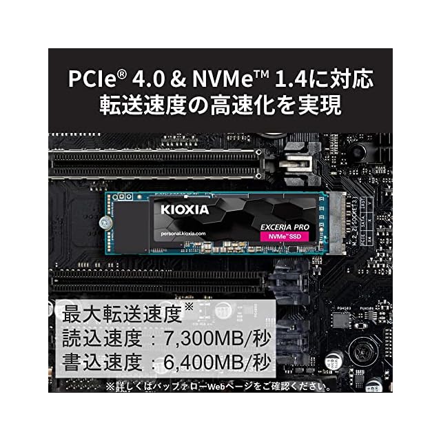商品名:キオクシア KIOXIA 内蔵 SSD 2TB NVMe M.2 Type 2280 PCIe Gen 4.0×4 (最大読込: 7,300MB/s) 国産BiCS FLASH TLC 搭載 国内正規代理店5年 EXCERIA PRO SSD-CK2.0N4P/N【国内正規代理店品】