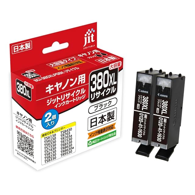 商品名:ジット キヤノン (CANON) BCI-380XLPGBK 2個セット 対応 ブラック リサイクルインク 日本製 JIT-NC380BXL2P