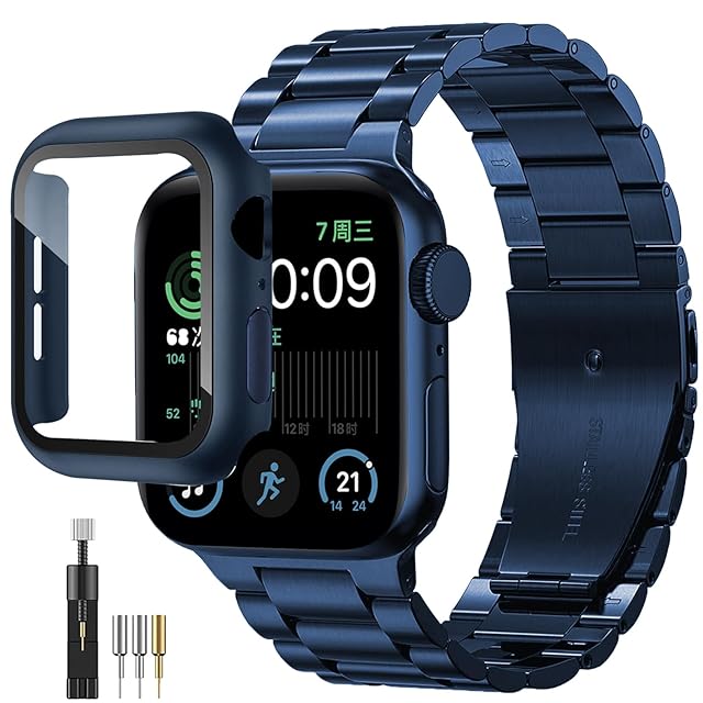 [FALSAD] 新型 Apple Watchバンド ステンレス 46mm/42mm/44mm/40mm/45mm/41mm保護ケース付き 対応 Se/Se2/Series10/9/8/7/6/5/4 アップルウォッチ 交換バンド,iwatch メタル 金属 長さ調整器具付き メンズ レディース兼用ベルト ビジネス 通勤(42mm ブルー) | TREND DESIGN 家電専門店