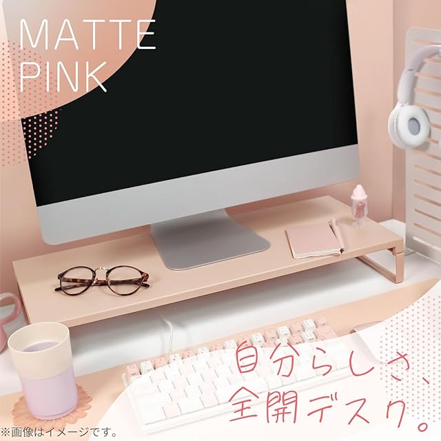 リヒトラブ パソコン台 モニター台 机上台 ゲーミング 幅59×奥行25×高さ8cm ロー 耐荷重15kg マットピンク AJA7332-112