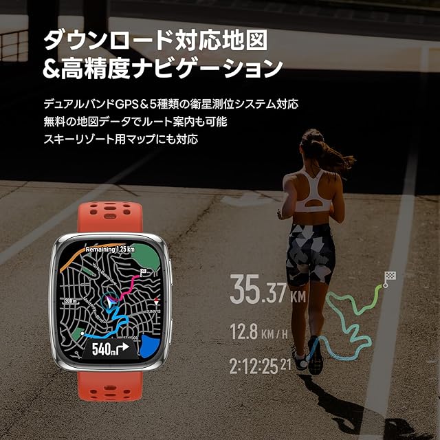 【地図をダウンロードして音声ナビゲーション】 Zeppアプリから地図を無料でダウンロード可能。内蔵スピーカーまたはBluetoothイヤホンを使って、音声でのターンバイターンナビゲーションが受けられます。5つの衛星測位システム対応で、素早く正確なGPS位置情報を取得します。