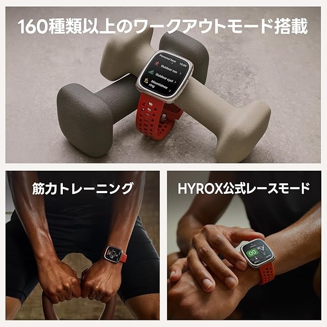 【160種類以上のスポーツモードに対応】 ランニング、サイクリング、ヨガ、パデル、犬の散歩まで、あらゆるアクティビティを記録可能。防水設計と気圧計を搭載しており、水泳やスキーなどのアウトドアスポーツにも対応します。