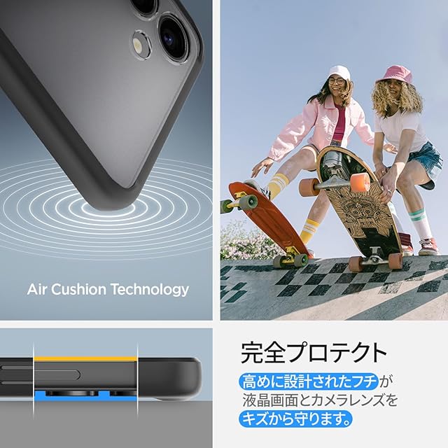 【使用面へのこだわり】落下時の衝撃を出来る限り緩衝出来るよう、四隅で衝撃を吸収する「エアクッションテクノロジー」を採用。本体機能でもある「ワイヤレス充電」もケースを装着したまま行えます。