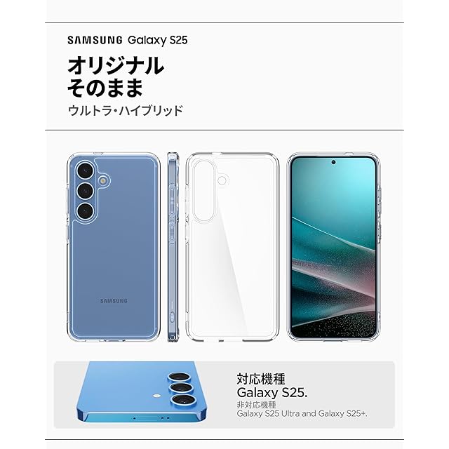 商品名:Spigen 【創業18年の技術力】 Galaxy S25 ケース 耐衝撃 ストラップホール 黄変防止 バンパー ワイヤレス充電 米軍MIL規格 ウルトラ・ハイブリッド ACS09006 (クリスタル・クリア)