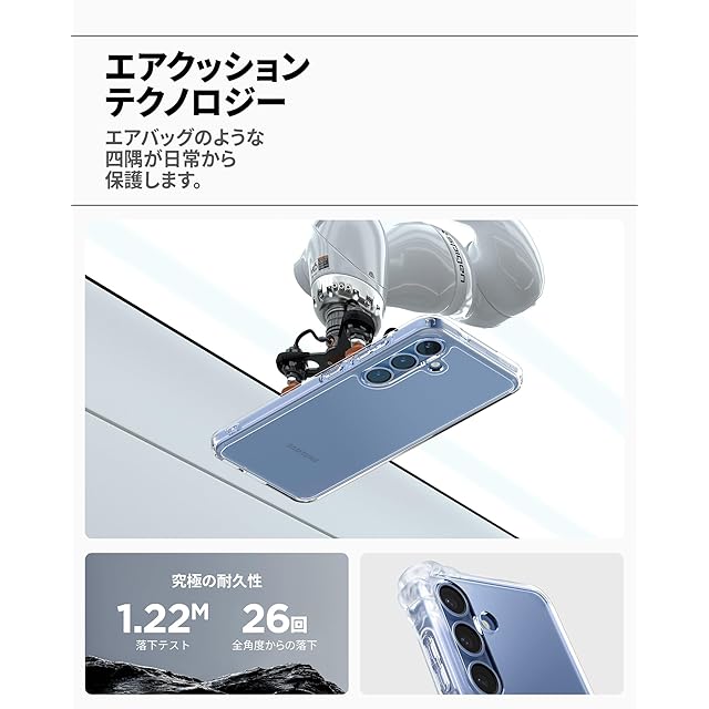 【米軍MIL規格取得/証明された保護能力】1.2mの高さから26回落下してもデバイスが無事な場合認められる米軍MIL規格「MIL-STD 810G-516.6」を取得しました。四隅で衝撃を吸収する「エアクッションテクノロジー」技術を採用しており、毎日、守り続けます。