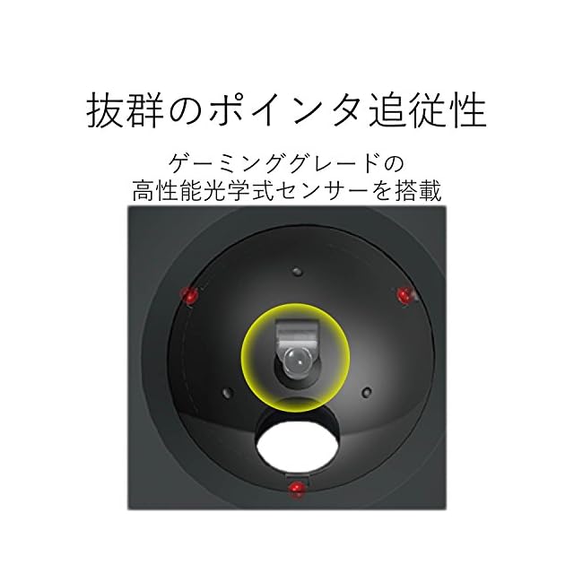 トラックボールの動きを検出するセンサーに、ゲーミンググレードの高性能光学式センサーを搭載し、新型の高性能レンズと周辺の光学設計の最適化で抜群のポインタ追従性を実現しています。