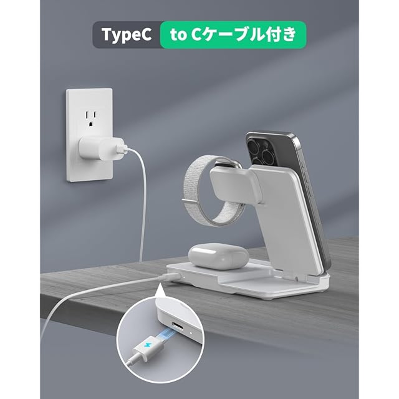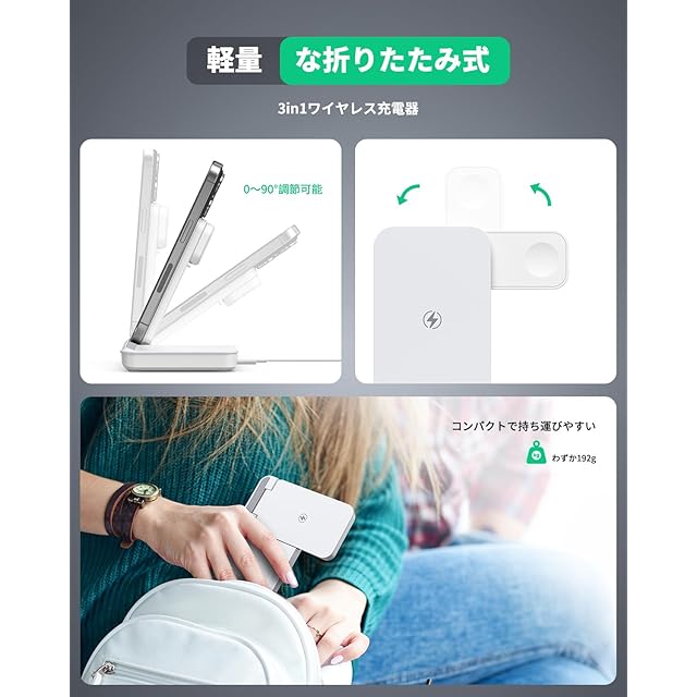 商品名:【2025昇進型】TEPNICAL ワイヤレス充電器 3 in 1急速充電 折り畳み式 スタンド 置くだけ 15W/10W/7.5W iPhone 16/15/14/13/12シリーズ対応/Galaxy/Note/Apples iWatch など対応 20W PDアダプター付属 ホワイト