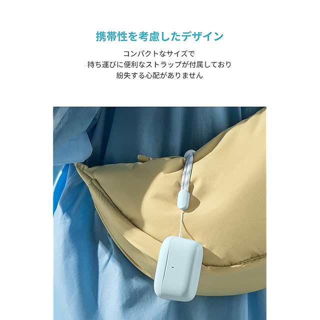 持ち運びに便利なミニマルなデザイン:ケースを含めて、わずか41.3gで小さく軽量です。ストラップが付属しており、アクセサリーのようにバッグに付けることも可能で持ち運びに最適です。