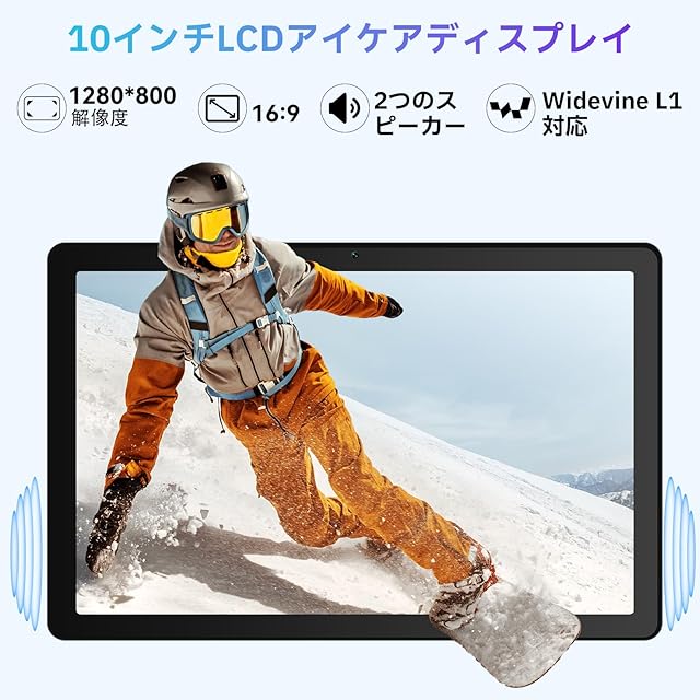 【10インチ タブレット・IPS HDディスプレイ・目に優しい・5MP/8MPカメラ】10インチのIPSディスプレイは解像度1280×800で、高性能GPUの搭載により鮮やかで滑らかな映像を実現。ウェブ閲覧や映画視聴時に、リアルで臨場感あふれるビジュアルを楽しめます。IPS技術で視野角が広く、どの角度から見ても色鮮やかで自然な映像を提供します。Widevine L1対応により、HDコンテンツのストリーミング再生が可能です。さらに、ブルーライトカットモードによって長時間の使用や夜間視聴でも目に優しい環境を提供。読書や学習、映画鑑賞を快適にサポートします。5MPのフロントカメラと8MPのリアカメラを搭載し、ビデオ通話や高画質な写真撮影が可能です。